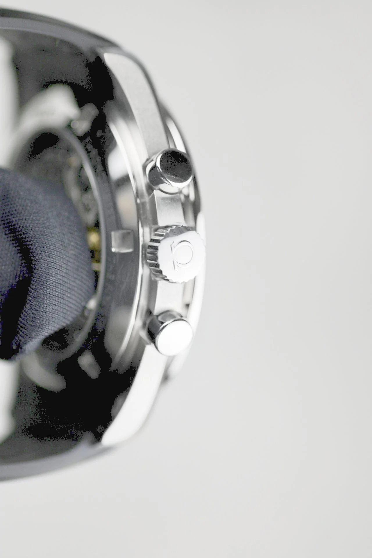 • Movement: Manual-wind Omega Co-Axial Master Chronometer chronograph movement.