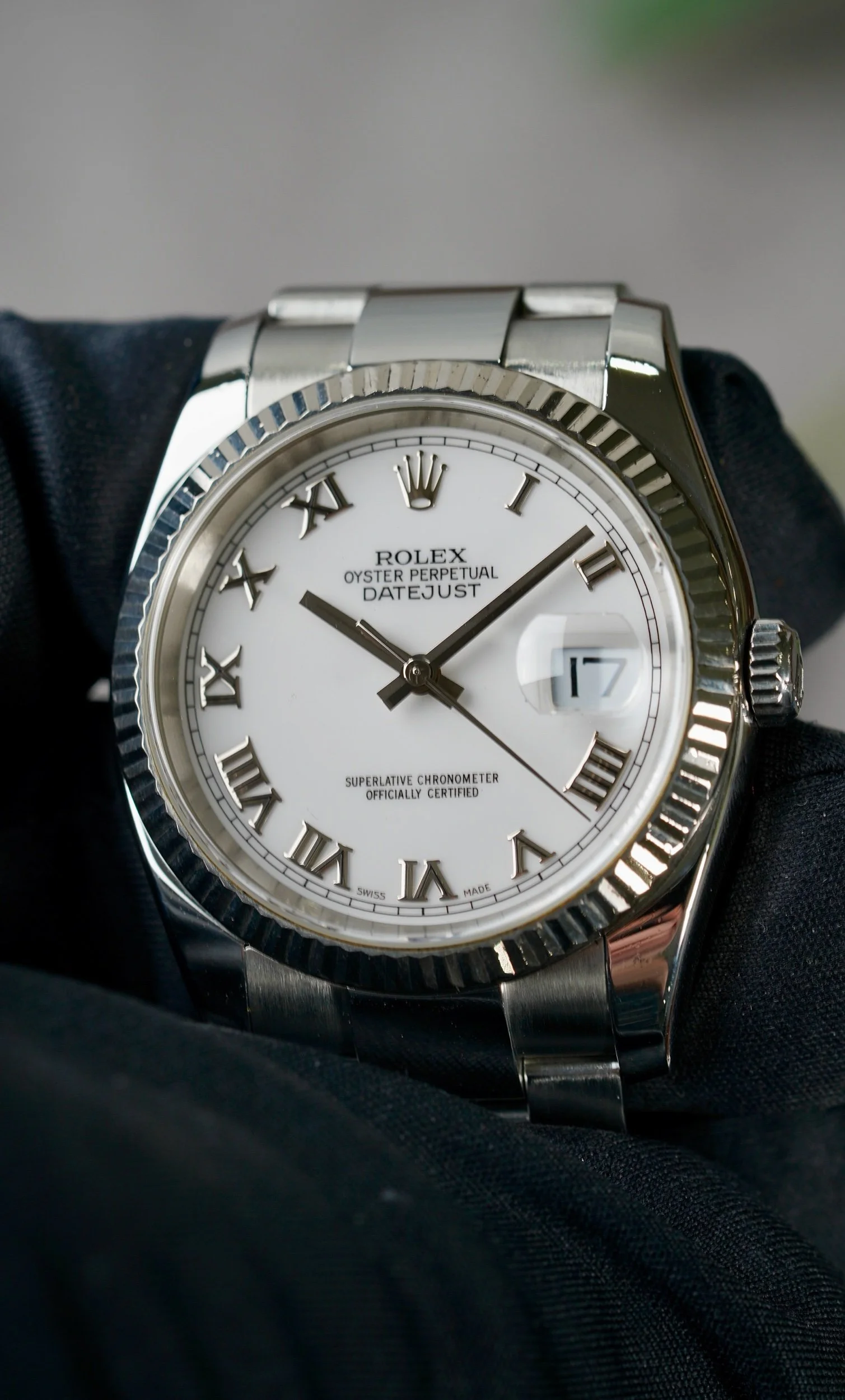 The Rolex Datejust 116234 is one of the most iconic and versatile models in Rolex’s catalog, offering a perfect balance of elegance and everyday practicality. The combination of the fluted white gold bezel, clean Roman numeral dial, and robust Oyster bracelet makes it a timeless piece suitable for any occasion, while maintaining strong collector demand and long-term desirability.